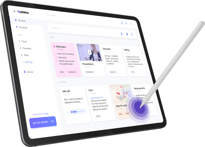 Stay focused and productive with a clean and clutter-free note space. The flexible ways to organize your notes: hashtags, nested notebooks, pinning notes to the top of the note list, etc